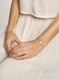 Eine einzelne Süßwasserperle hängt an einer zarten Kette und bringt einen minimalistischen Glanz in deinen Look. Das schlichte und stilvolle Design macht das Perlenarmband zu einem zeitlosen Klassiker. Dieses Armband passt perfekt zu verschiedenen Schmuckstücken wie Toujours Perlenhaarband, Lune Halskette und Lune Ohrringe.