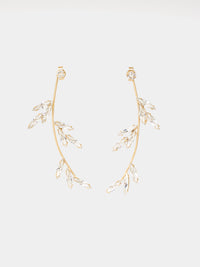 Elegant, raffiniert und akzentuierend. Diese zarten Statement-Ohrringe sind von Zweigen mit feinen Kristallblättern inspiriert. Sie sind so angeordnet, dass sie das Gesicht perfekt umrahmen.