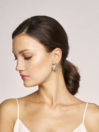 Die Lumière Crystal Ohrstecker sind eines unserer beliebtesten Designs. Die von Wildblumen inspirierten metallischen Blumenelemente werden für dieses raffinierte Design von Hand geschnitten, geformt und miteinander verbunden. Die Bewegung der zweiteiligen Ohrringe vermittelt die Illusion von tanzenden Schmetterlingen oder Blütenblättern im Wind.