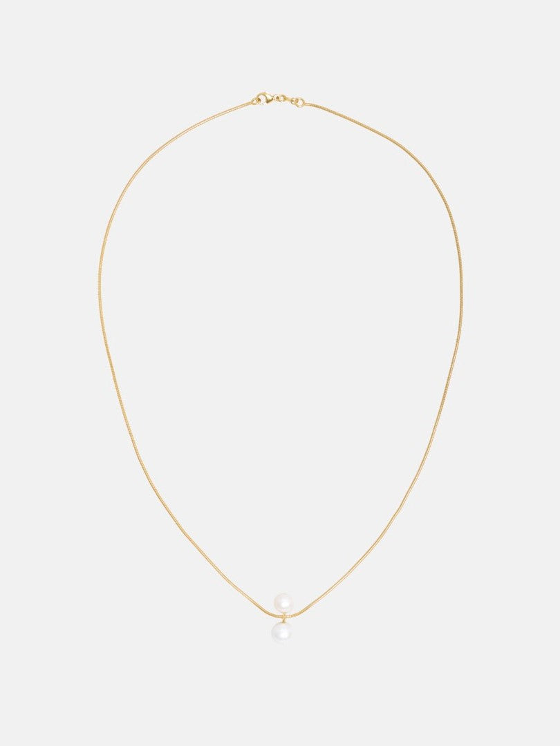 Our Capella necklace is so timeless and sophisticated that it can be worn on almost any occasion. It consists of a sterling silver chain with 24-carat gold plating and holds two different freshwater pearls.